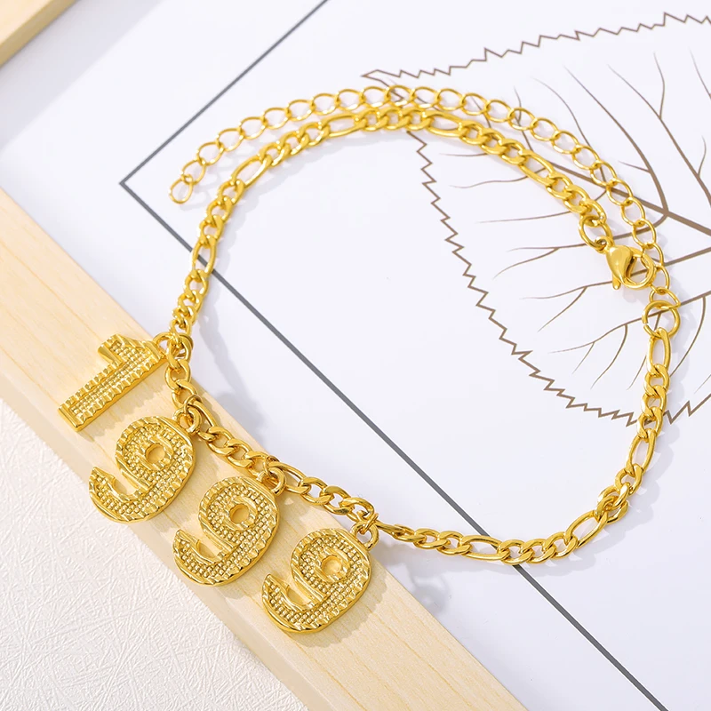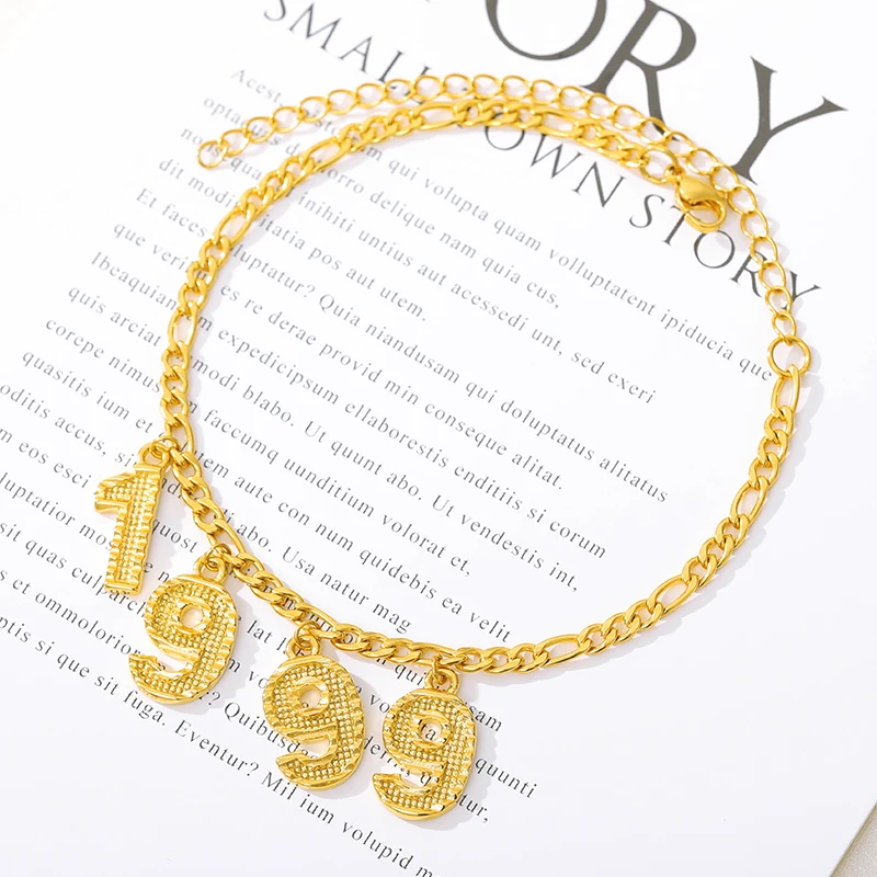 Custom Digital Jewelry English Number Anklet Stainless Steel Personalized Birth Year Foot Chains Women Mom Girls Birthday Gift