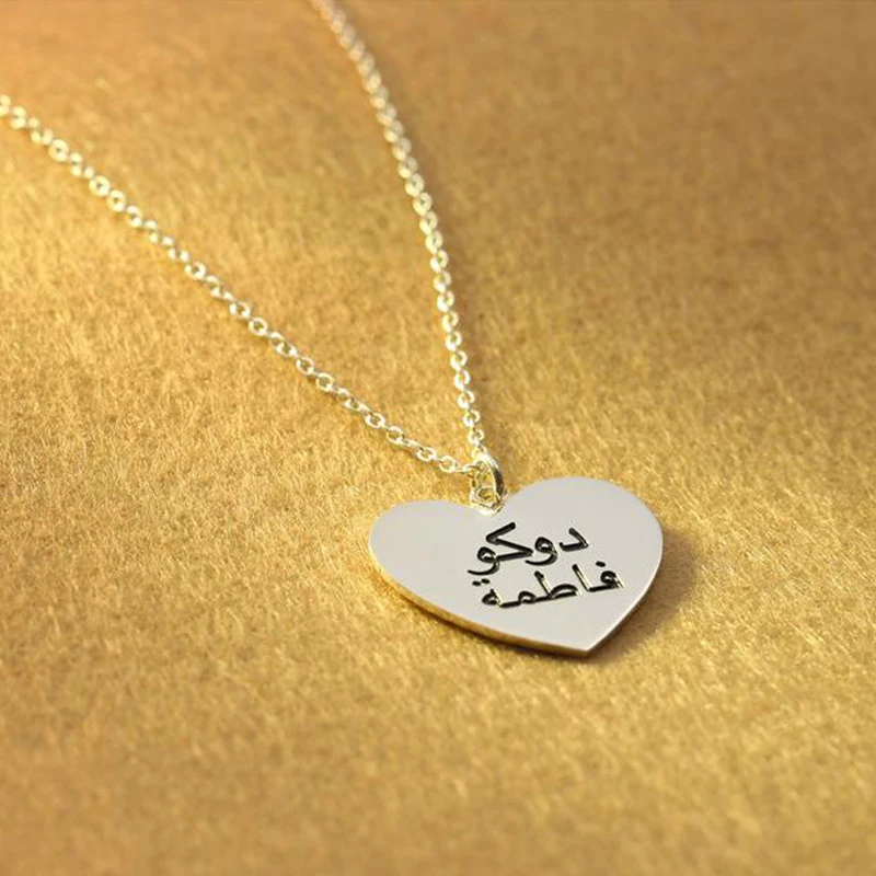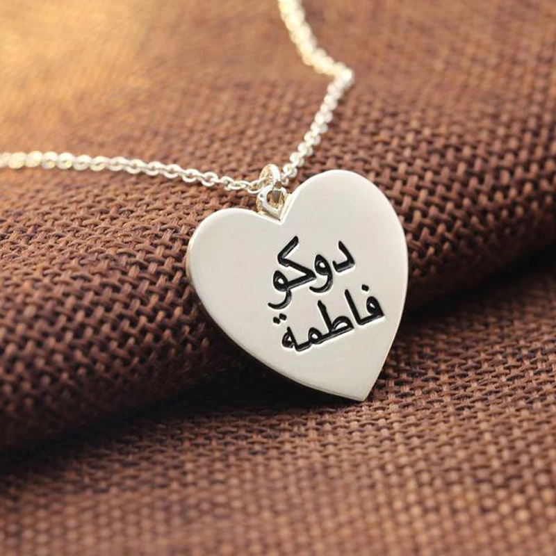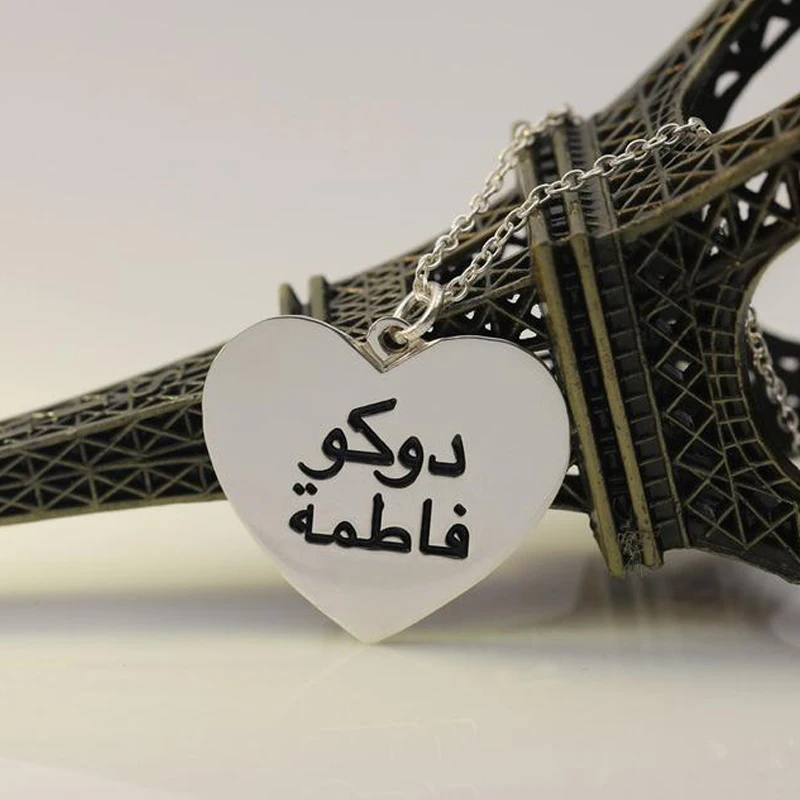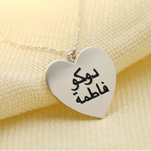 .Pictures for Custom Heart Necklace Silver Gold Chain Stainless Steel Engraved Couple Name Necklace Personalized Arabic Name Gift for Her BFF