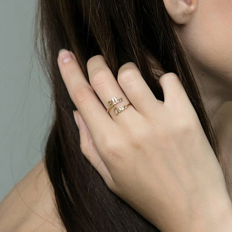 Custom Two Names Ring Silver Gold Stainless Steel Custom Couple Friendship Ring Adjustable Two Names Rings Wedding Gift BFF