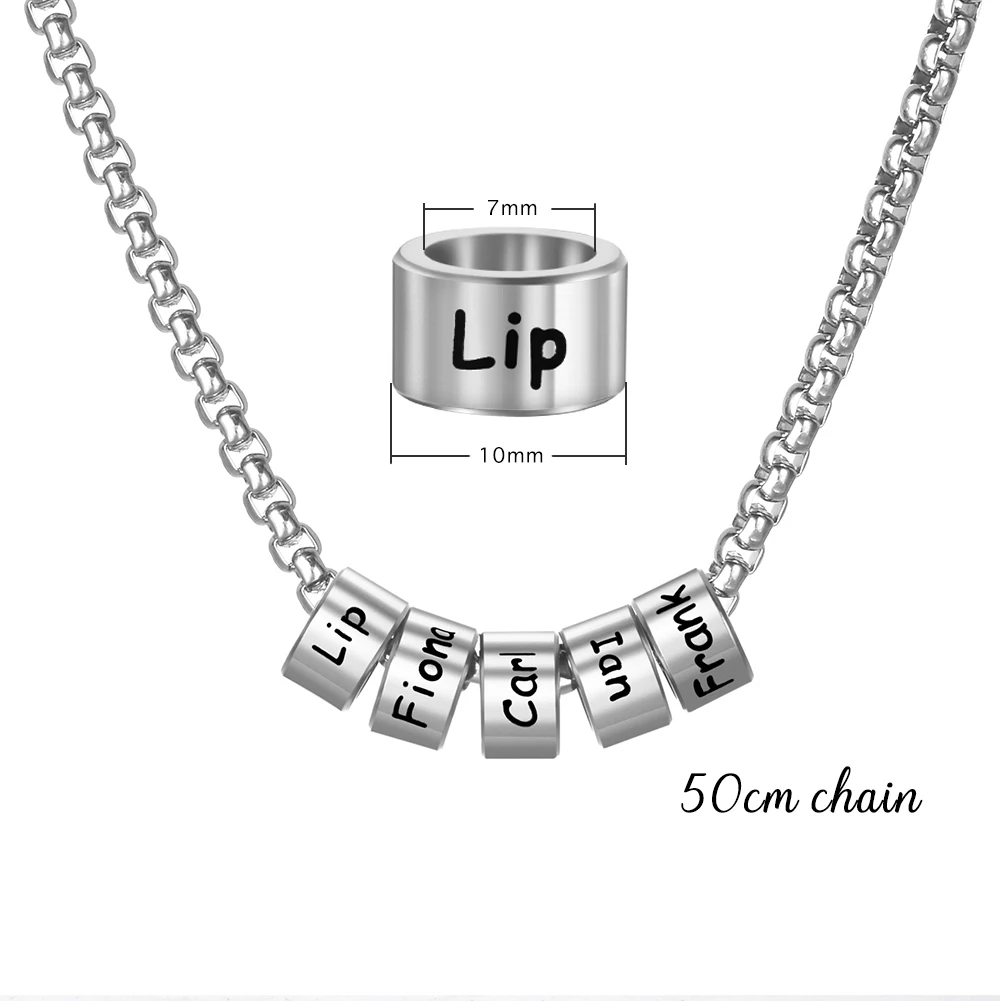 Best Price for Engraving Family Name Stainless Steel Beads Sliding Pendnat For Woman Man with 50cm Chain Personalized Name Family Gift