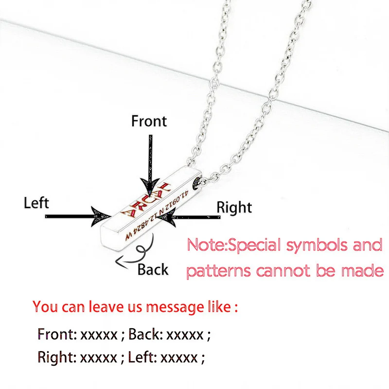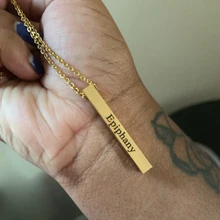 Addition Information of Engraving Personalized Square Bar Custom Name Necklace Women Rose Gold Sliver Chain Stainless Steel Letter Necklace Men Jewelry
