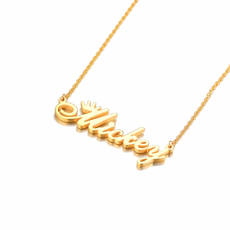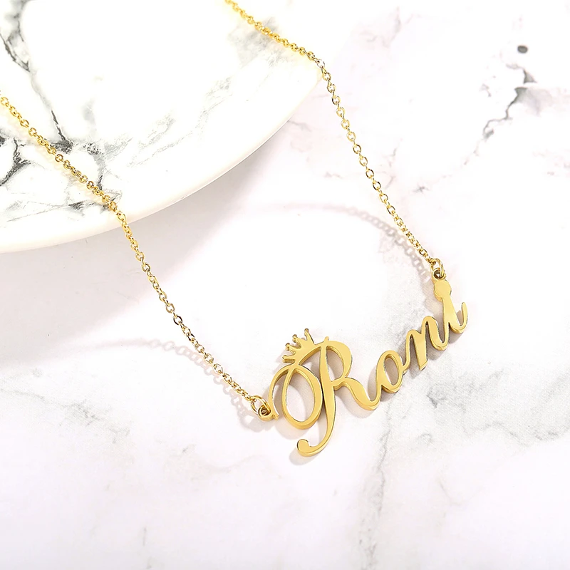.Gallery for Personalize Crown Name Chokers for Women Solid Stainless Steel Necklaces Letter Initial Pendant Gold-color Custom Gift Jewelry