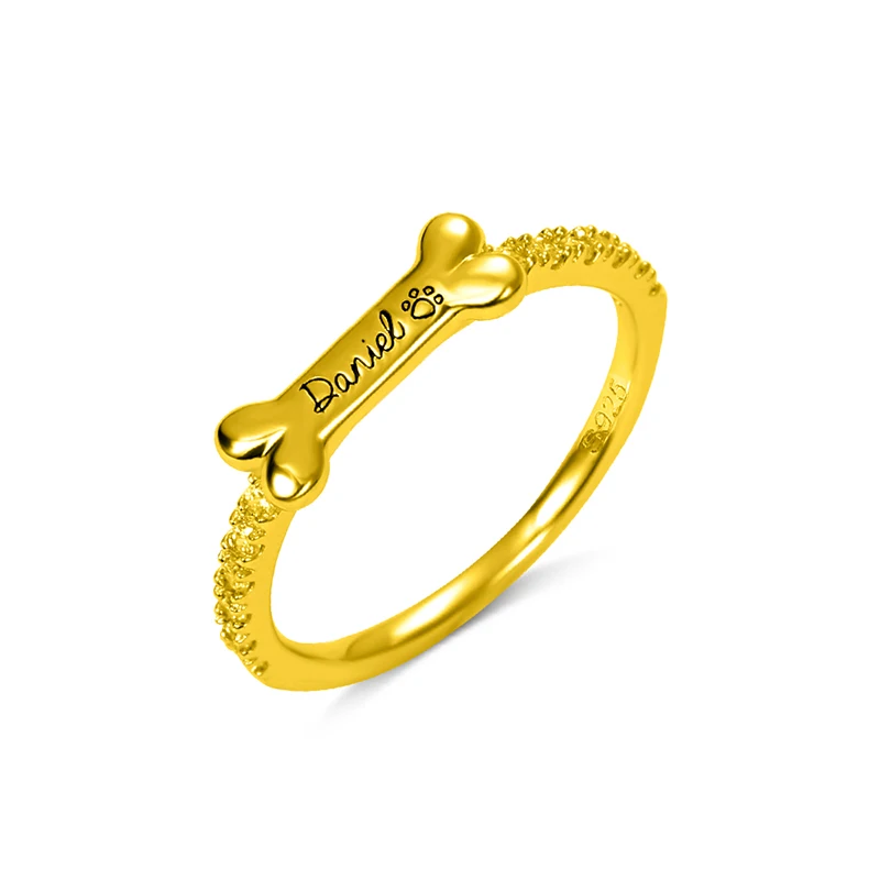Offer Description of Personalized Dog Bone Shape Engraved Dog Pet Name Ring Memorial Ring Dog Paw Ring Girl Women Rings Custom Name Rings