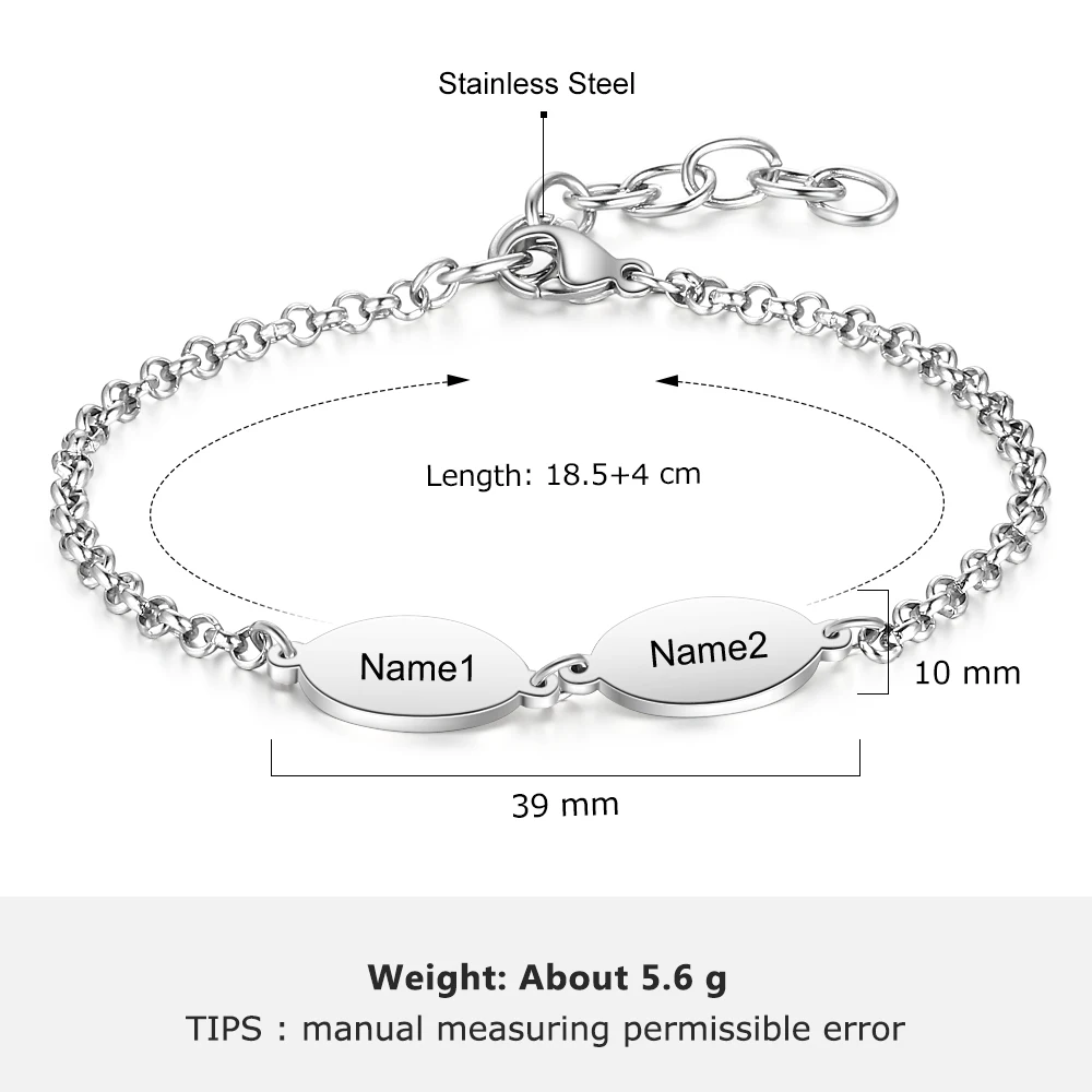 Addition Information of Personalized Engraved Chain Bracelets for Couples Custom 2 to 4 Names Stainless Steel Friendship Bracelet (JewelOra BA102665)