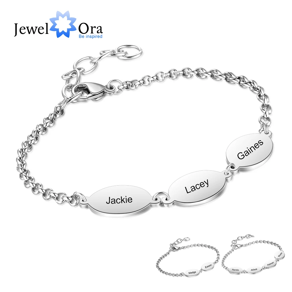 Offer Description of Personalized Engraved Chain Bracelets for Couples Custom 2 to 4 Names Stainless Steel Friendship Bracelet (JewelOra BA102665)