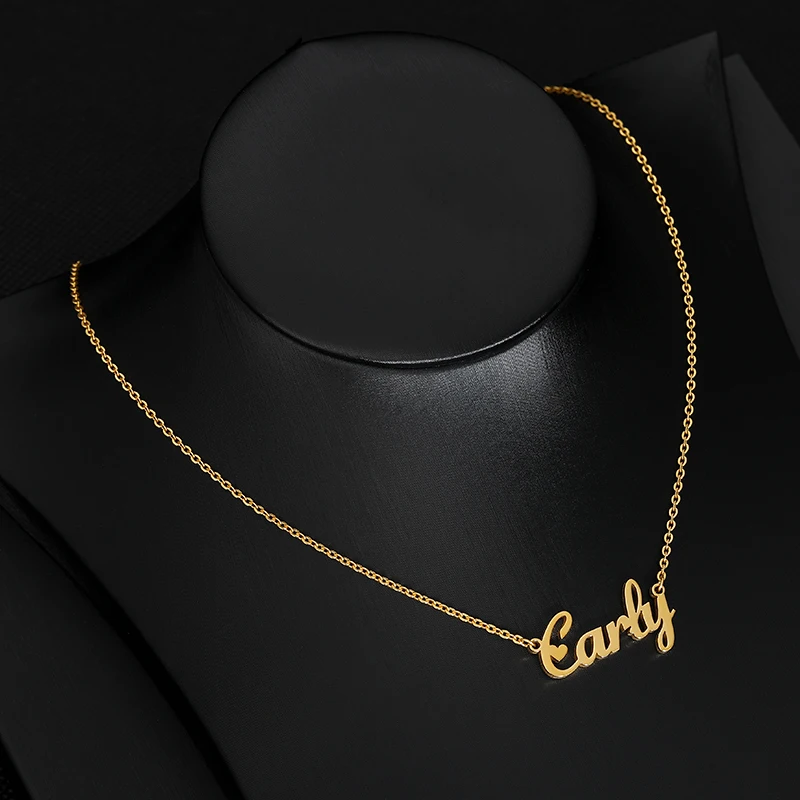 .Gallery for Personalized Font Name Design Custom Necklaces For Women Men Stainless Steel Gold Silver Long Chain Nameplate Pendant Necklace