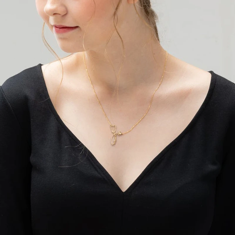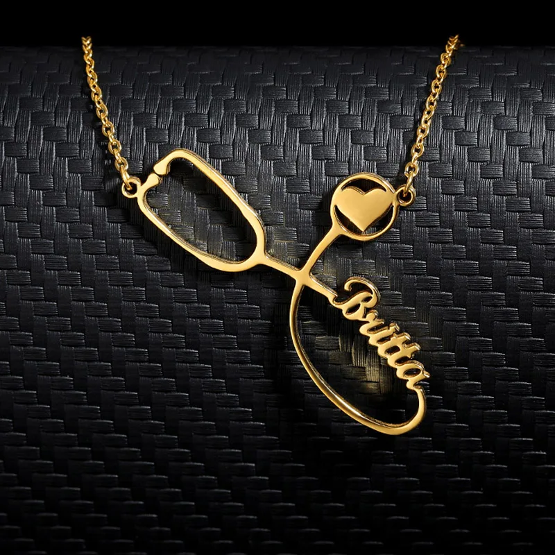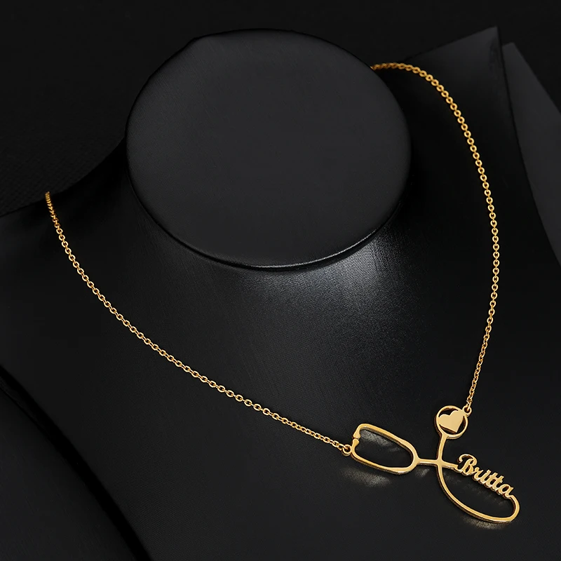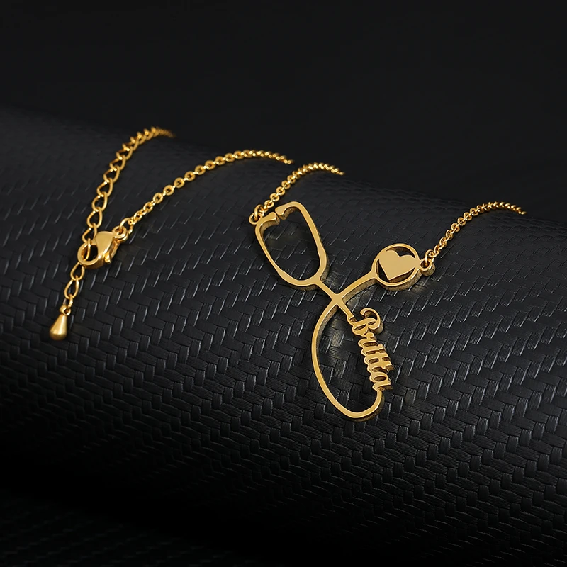 .Images of Personalized Name Necklaces Pendents Collares Mujer Stainless Steel Engraved Stethoscope Necklace Women Boho Jewelry BFF Collar