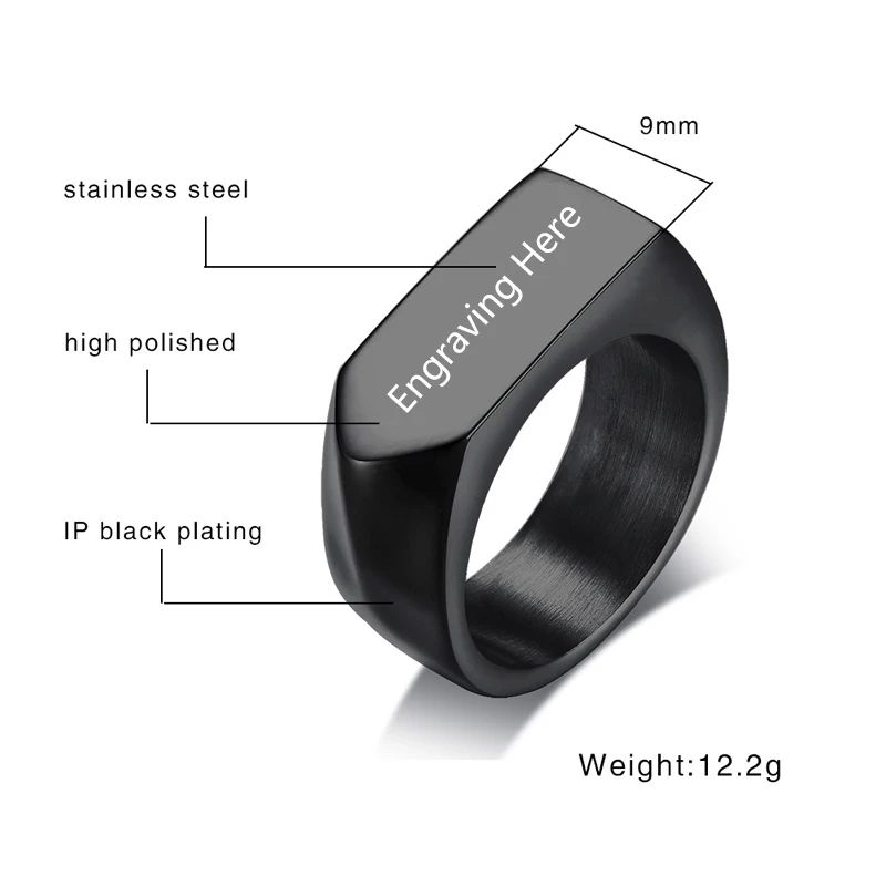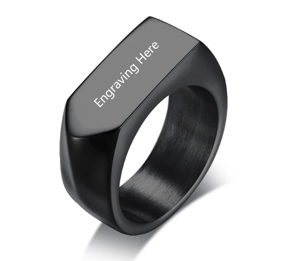 Offer Description of Punk Style Personalized Stainless Steel Rings for Men Gold Black Color Customized Engraved Name Signet Rings Fashion Jewelry