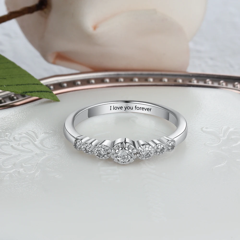 925 Sterling Silver Personalized Engraved Rings for Women with CZ Stone Custom Engagement Wedding Rings Jewelry Gifts for Her