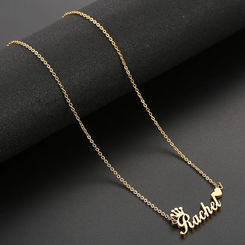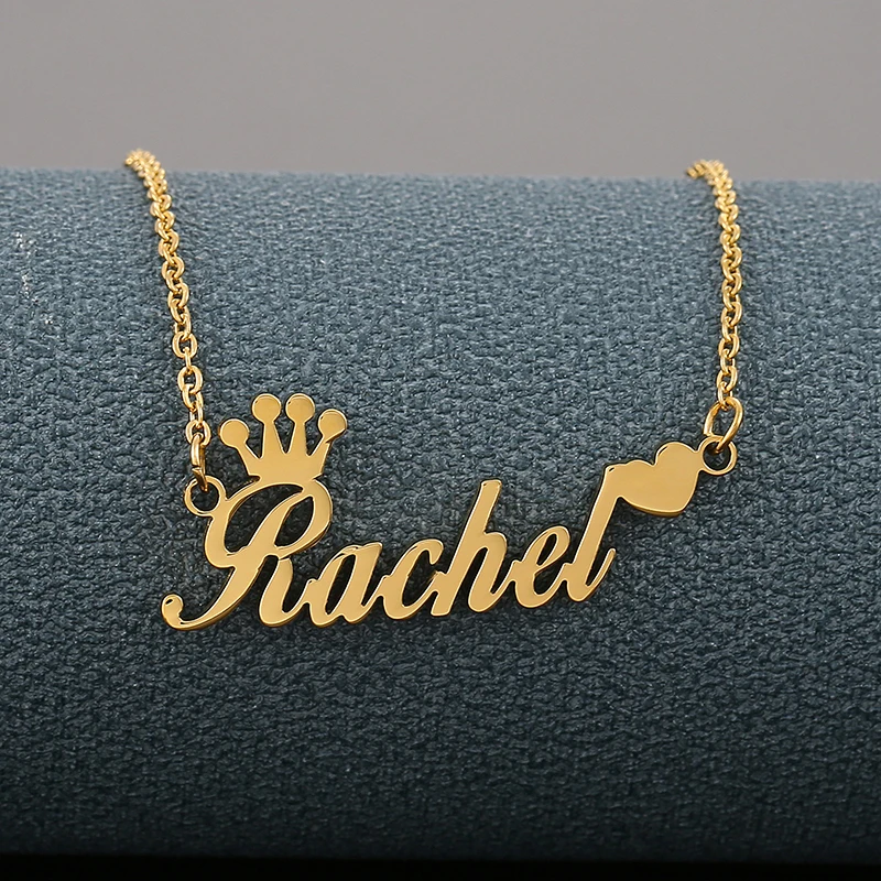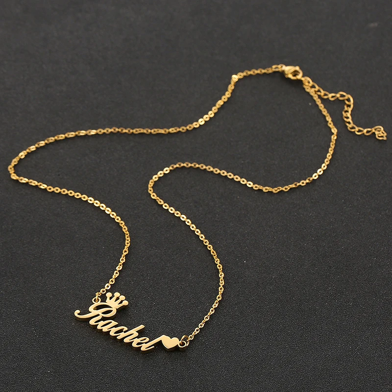 Personalized Name Necklace Custom Steel Gold Pendent Love Heart Crown Jewelry For Women Man Jewellery Accessories Gift 2019