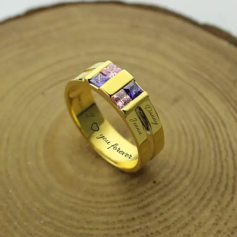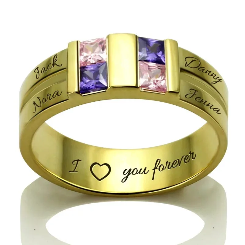 .Gallery for Authentic 925 Sterling Silver Personalized engraved 4 Name 4 birthstone finger Rings for Women custom wedding Jewelry