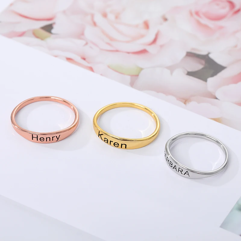 .Gallery of Custom Delicate Personalized Name Ring Customized Engraved Initial Date Coordinates Name Rings For Lover Best Friend Jewelry BFF