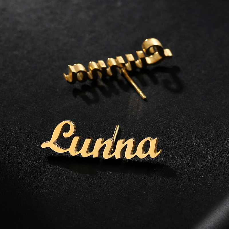 .Pictures for Custom Jewelry Name Earrings For Women Stainless Steel Personalized Nameplate Stud Earings Fashion Jewelry Aretes De Mujer