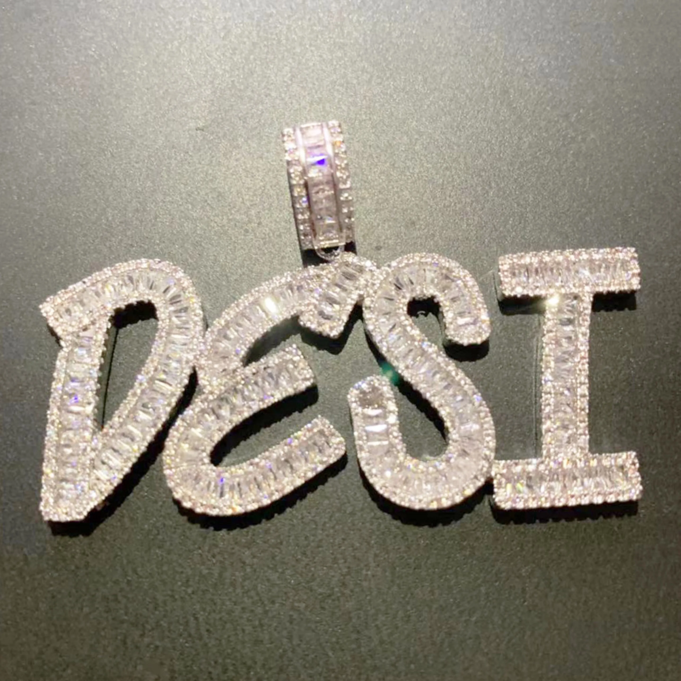 Addition Information of Custom Name Baguette Letters Hip Hop Iced Out Pendant with tennis chain Gold Silver Bling Zirconia Men's Hip Hop Charm Gift