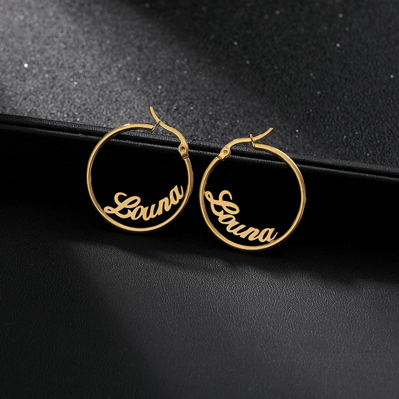 .Pictures for Custom Name Hoop Earrings A-Z Letters Custom Name 70mm Big Round Hoop Earings Fashion Jewelry Bijoux Femme aretes de mujer