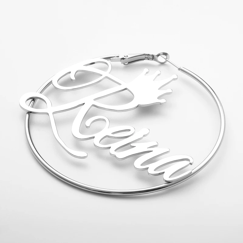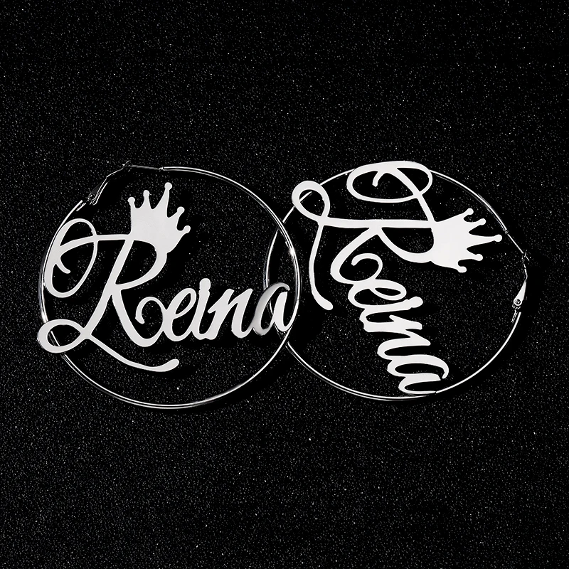 Special Price of Custom Name with Crown Big Circle Earrings Silver Gold 1 Pair Stainless Steel Personalized Big Nameplate Handmade Party Gifts