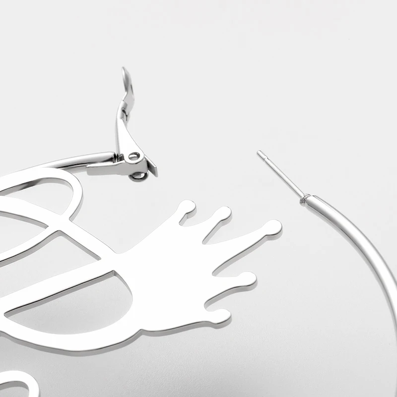 Price Description of Custom Name with Crown Big Circle Earrings Silver Gold 1 Pair Stainless Steel Personalized Big Nameplate Handmade Party Gifts