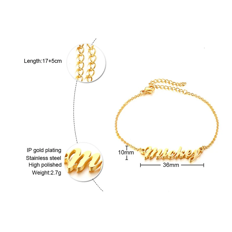 Addition Information of Customize Name Bracelet Women Wedding Birthday Jewelry Silver Gold Color Not Fade