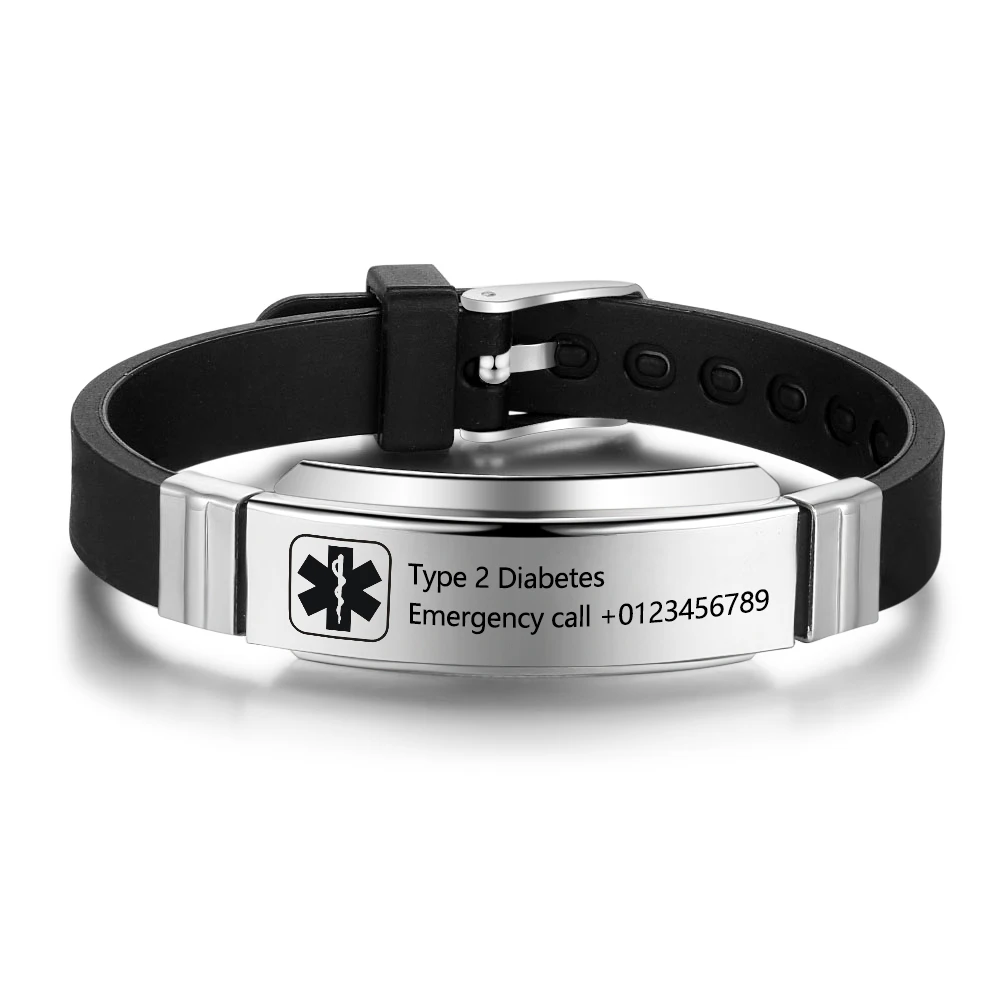 Addition Information of Customized Silicone Medical Alert ID Bracelet Waterproof Stainless Steel Adjustable Emergency Identification Bangle Wristband