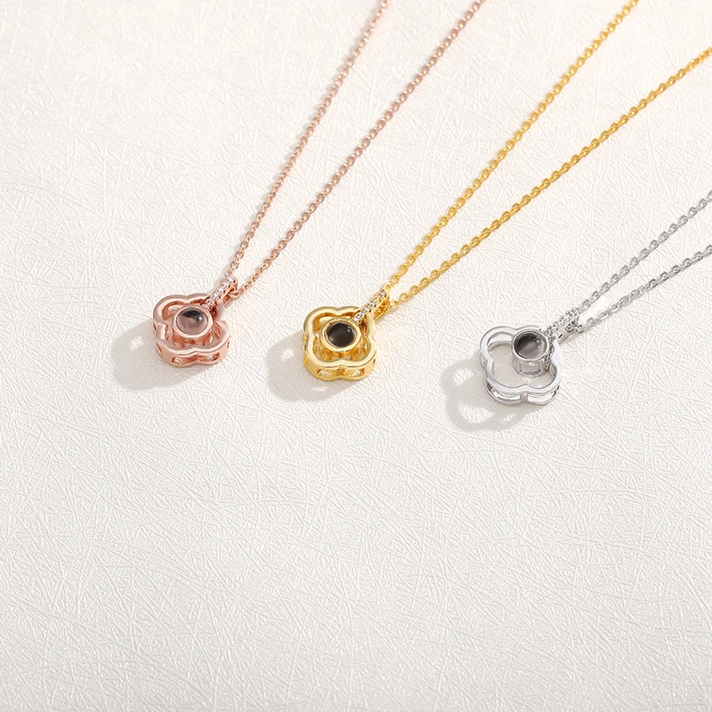 .Images for Dropshipping New Rose Gold Silver 100 Languages I Love You Projection Pendant Necklace Romantic Love Memory Wedding Necklace