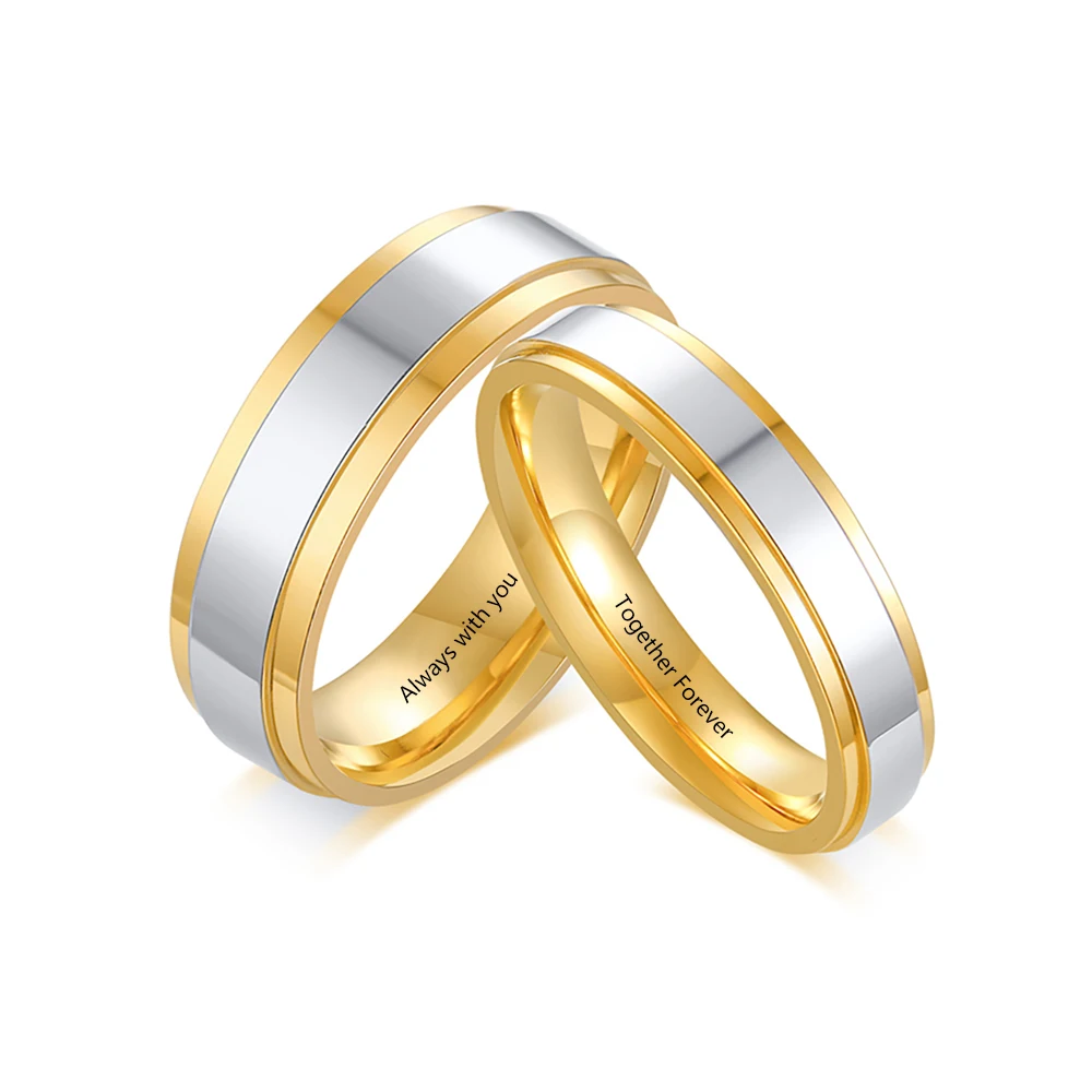 Engraving Stainless Steel Couple Ring Gold Plated Love Alliance Wedding Band Anniversary Ring For Men Women Promise Jewelry