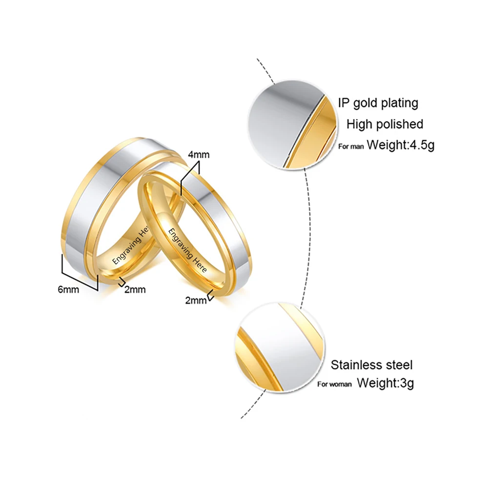Addition Information of Engraving Stainless Steel Couple Ring Gold Plated Love Alliance Wedding Band Anniversary Ring For Men Women Promise Jewelry