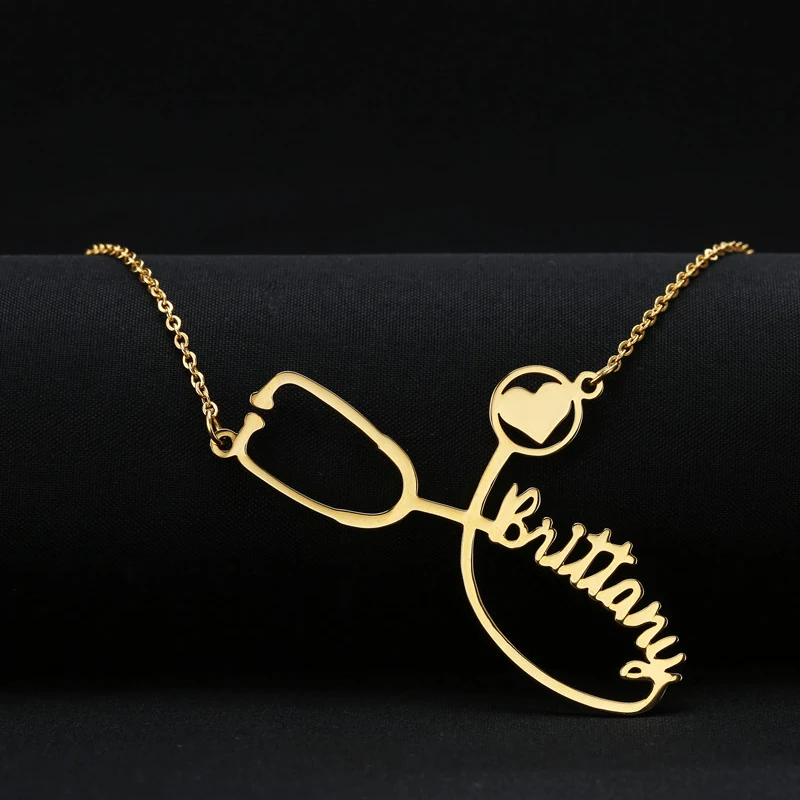 Fashion Personalized Custom Stethoscope Name Heart Necklace For Women Gold Stainless Steel Chain Choker Jewelry Christmas Gift
