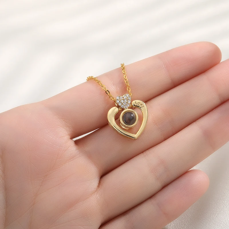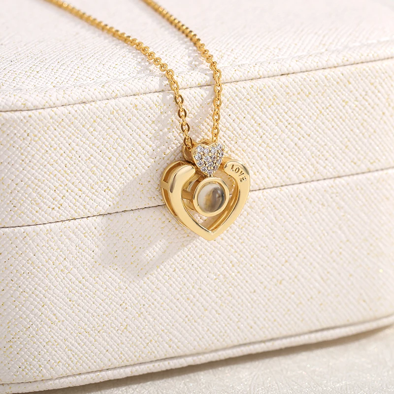 .Gallery of I love you Projection Pendant Necklace Romantic Love Memory Wedding Necklace Rose Gold&Silver 100 languages
