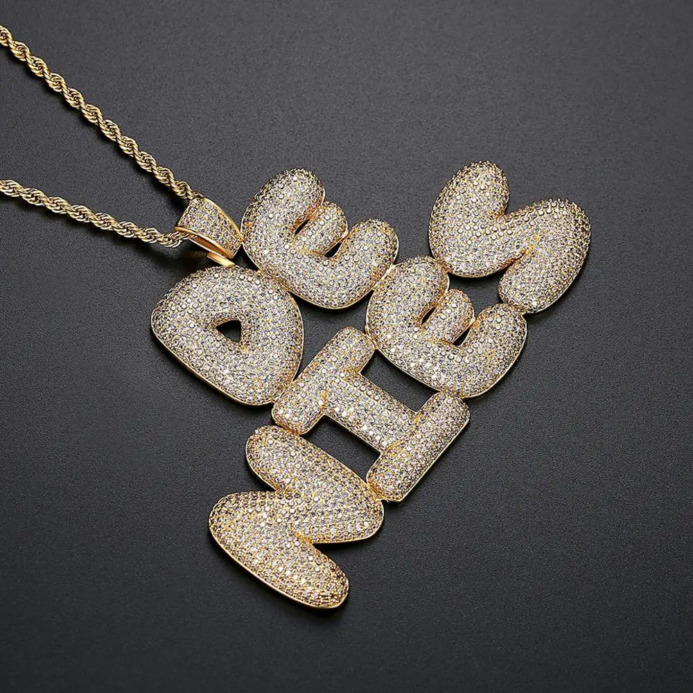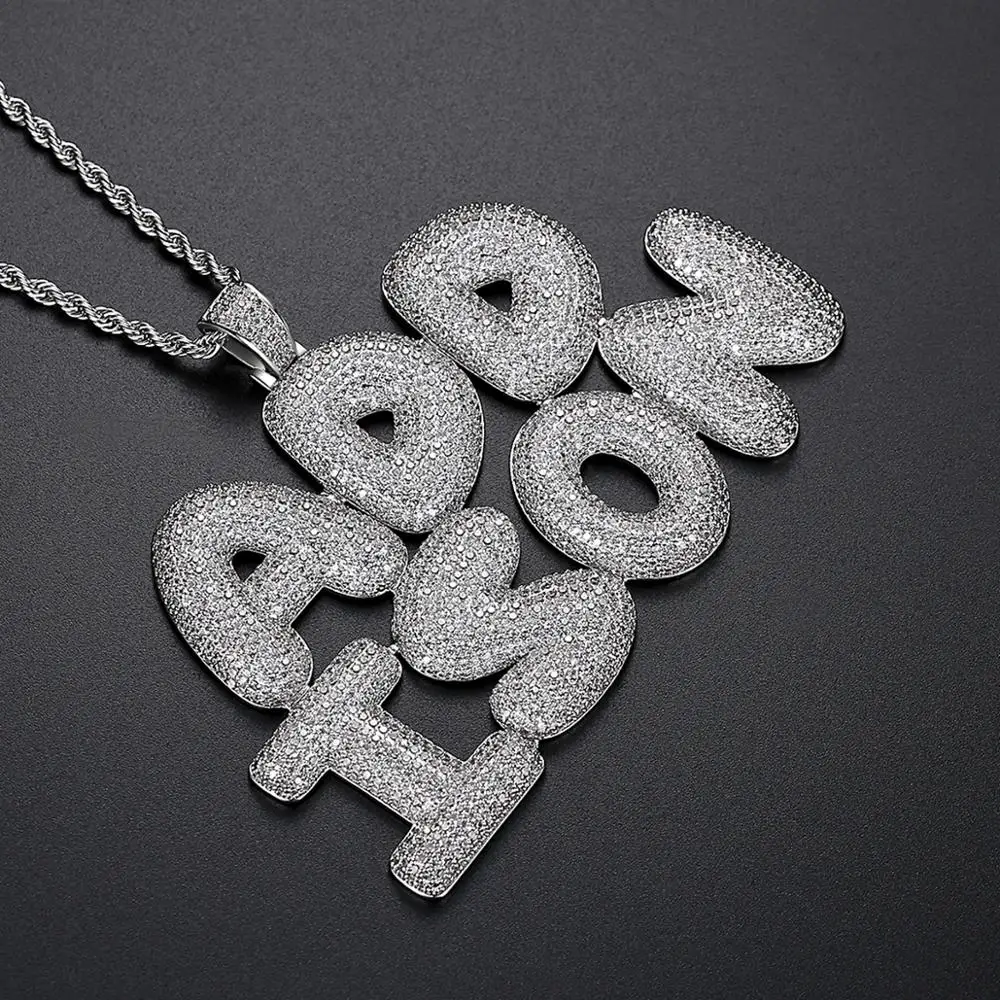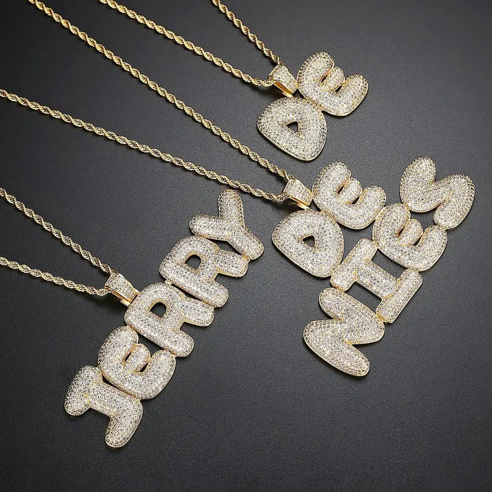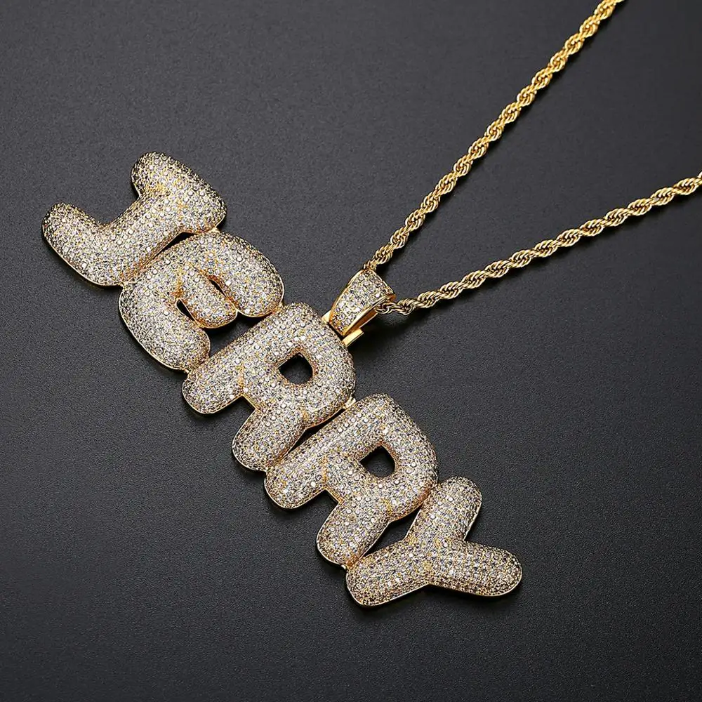 JINSE Custom Name Necklace Personalized Bubble letter Pendant Necklace Cubic Zircon Iced Initials Necklace Hiphop Jewelry