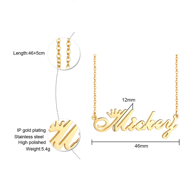 Addition Information of Personalize Name Necklace Women Crown Dedign Princess Weddding Jewelry Not Fade