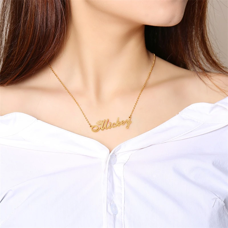 Personalize Name Necklace Women Crown Dedign Princess Weddding Jewelry Not Fade
