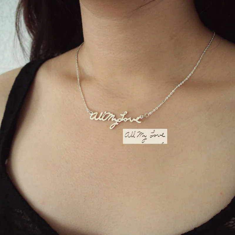 .Images of Personalized Custom Actual Handwriting Necklace BFF Stainless Steel Silver Gold Chain Choker Necklace Women Girls Custom Jewelry