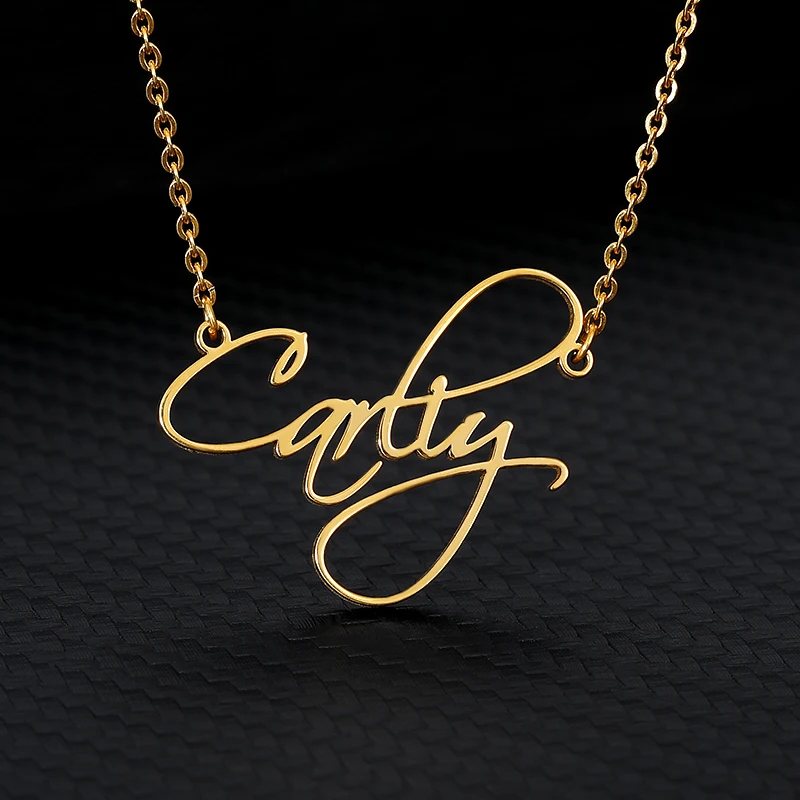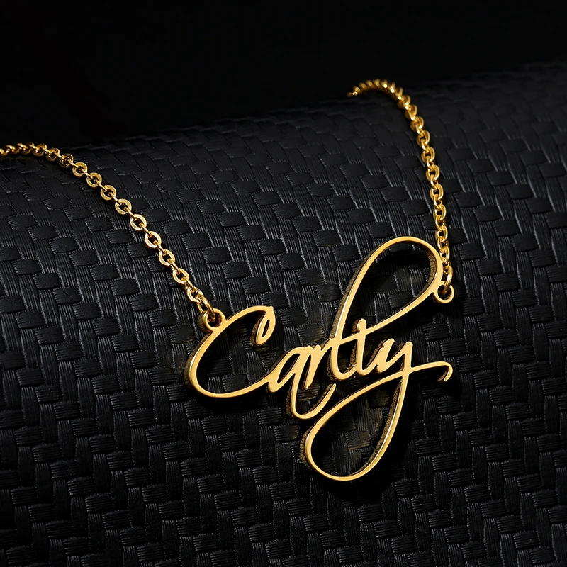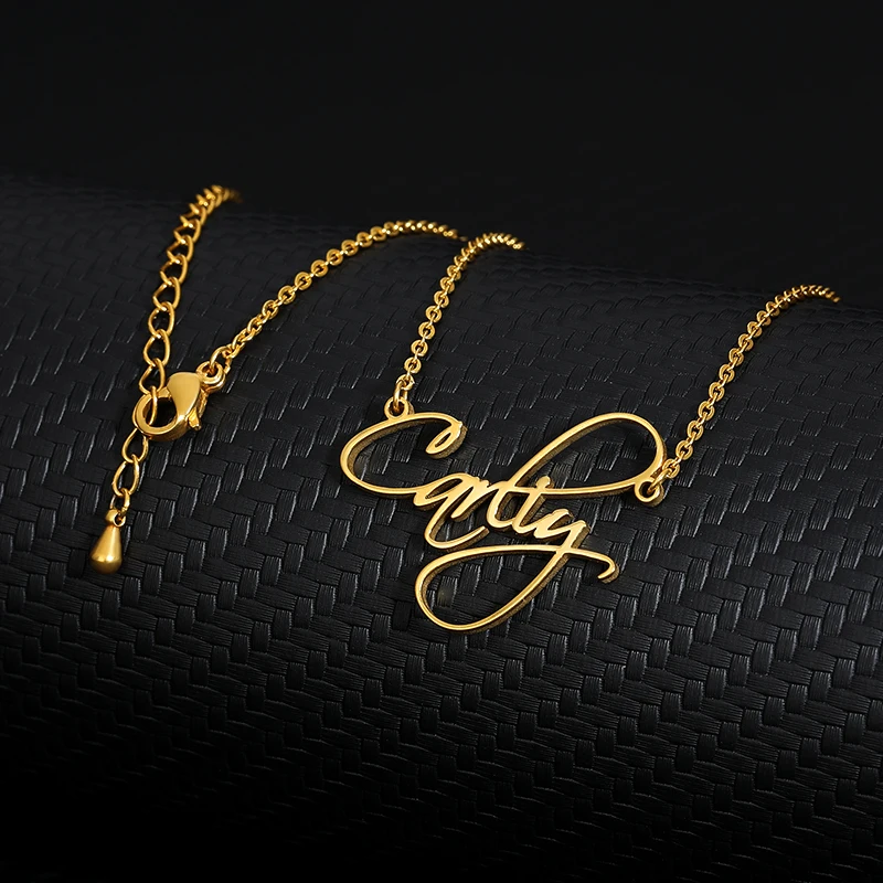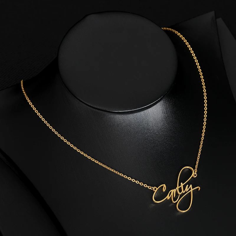.Images for Personalized Custom Scriptina Font Name Necklaces For Women Men Gold Silver Stainless Steel Long Chain Letter Pendant Necklace