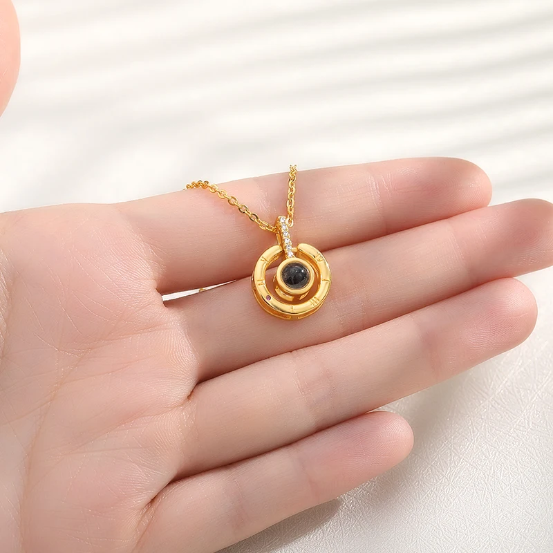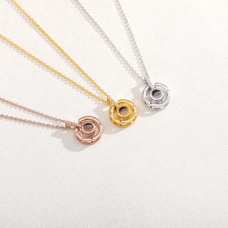 Rose Gold&Silver 100 languages I love you Projection Pendant Necklace Romantic Love Memory Wedding Necklace