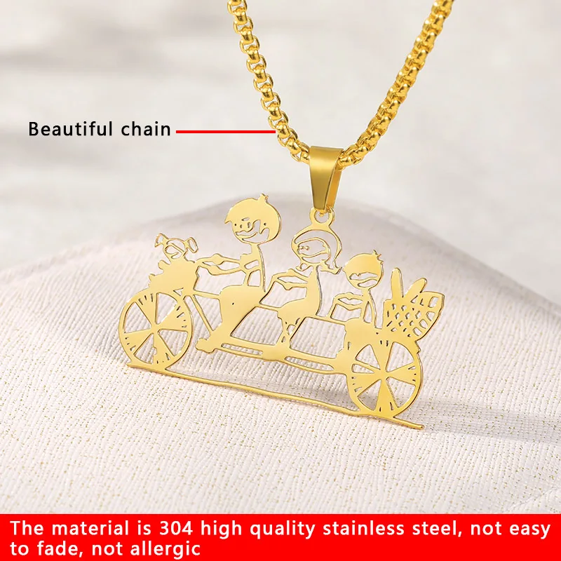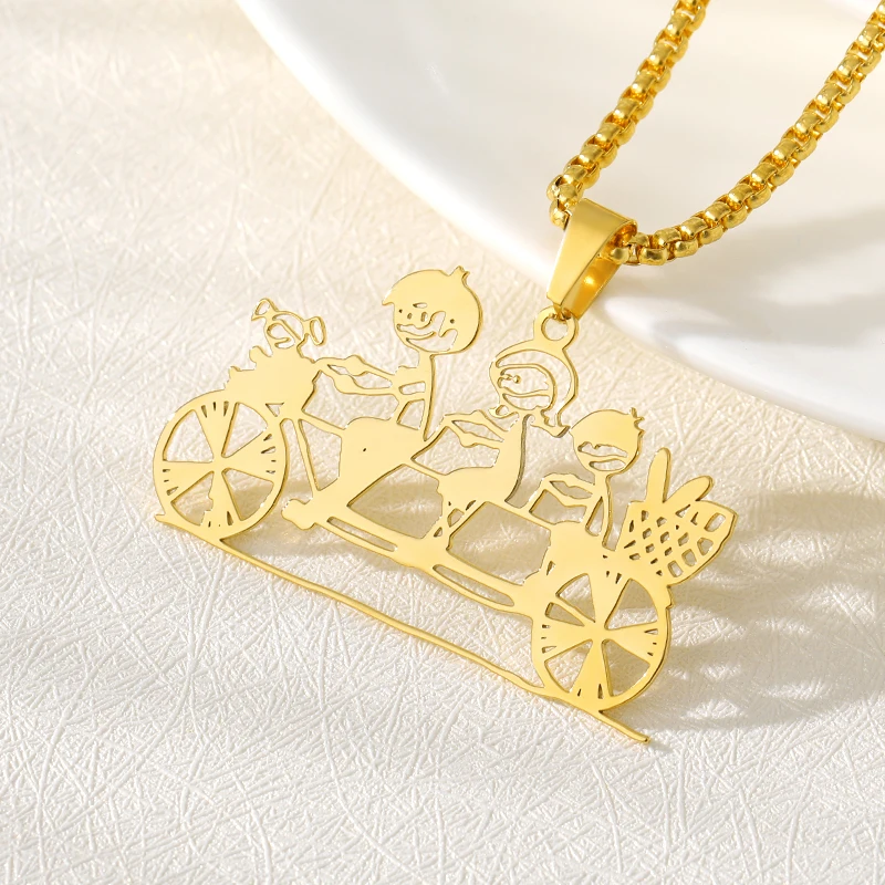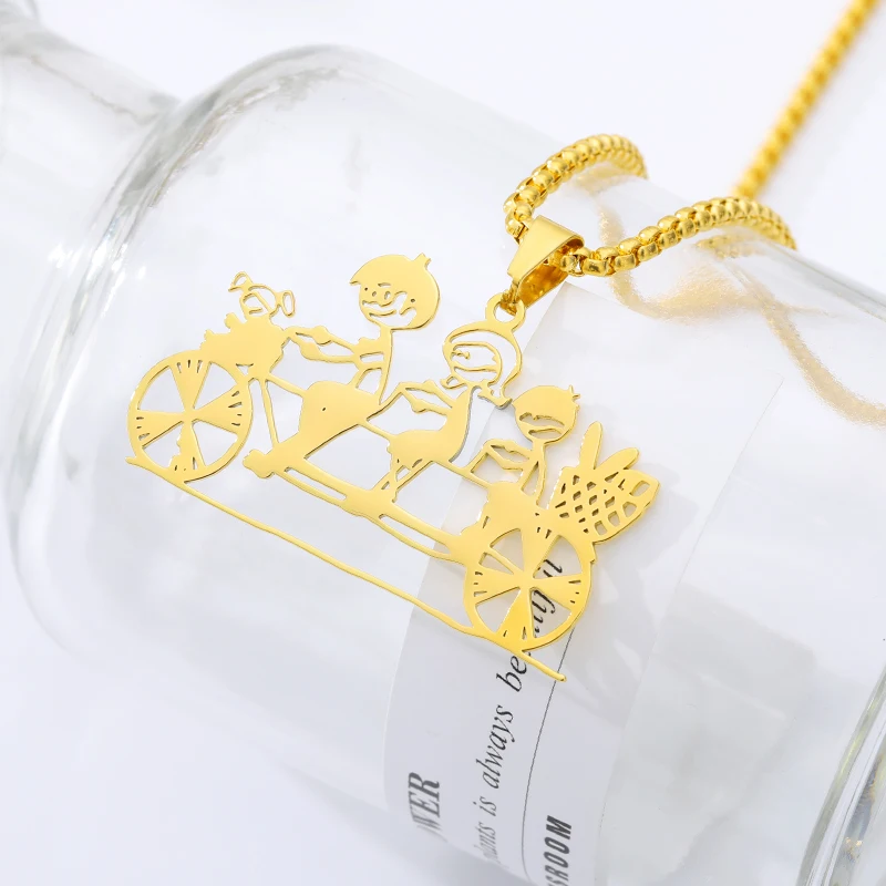 Custom Kids Drawing Necklace Personalized Children Artwork Necklace Stainless Steel Gold Sliver Chain for Mom Grandma Gift