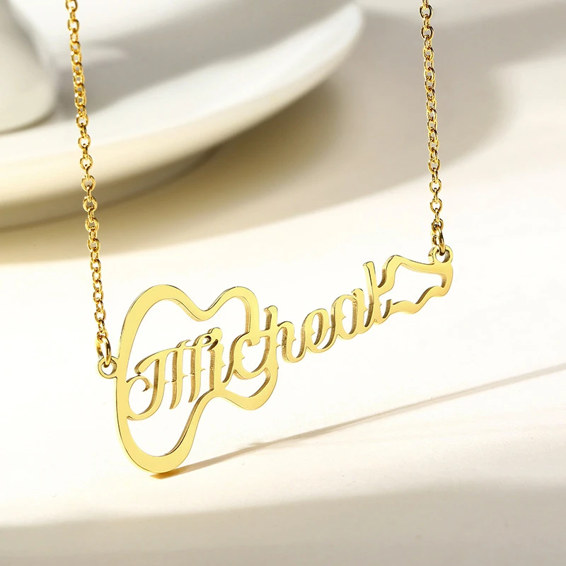Stylish Custom Name Guitar Stainless Steel Chokers for Women Musical Instrument Necklace Personalize Music Lover Jewelry