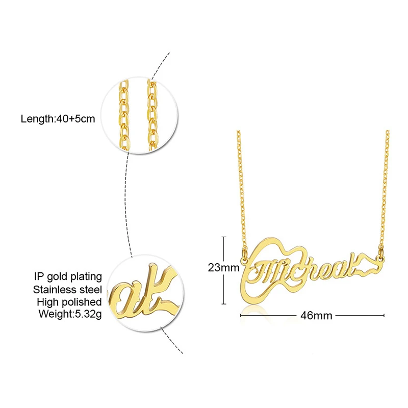 Addition Information of Stylish Custom Name Guitar Stainless Steel Chokers for Women Musical Instrument Necklace Personalize Music Lover Jewelry