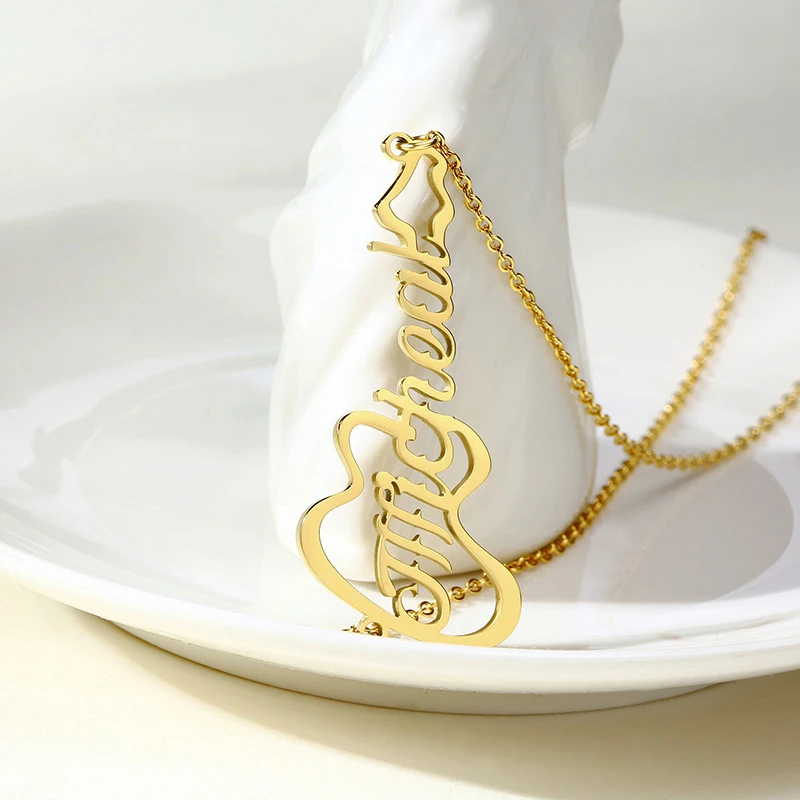 Good Chance for Stylish Custom Name Guitar Stainless Steel Chokers for Women Musical Instrument Necklace Personalize Music Lover Jewelry