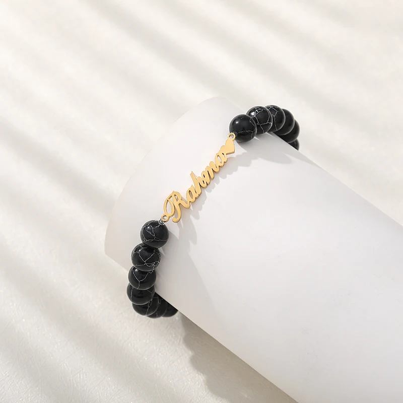 Classic Turquoise Custom Name Bracelet Natural Stone Personalized Bracelets for Women Jewelry Armband Pulseras Mujer Moda 2019