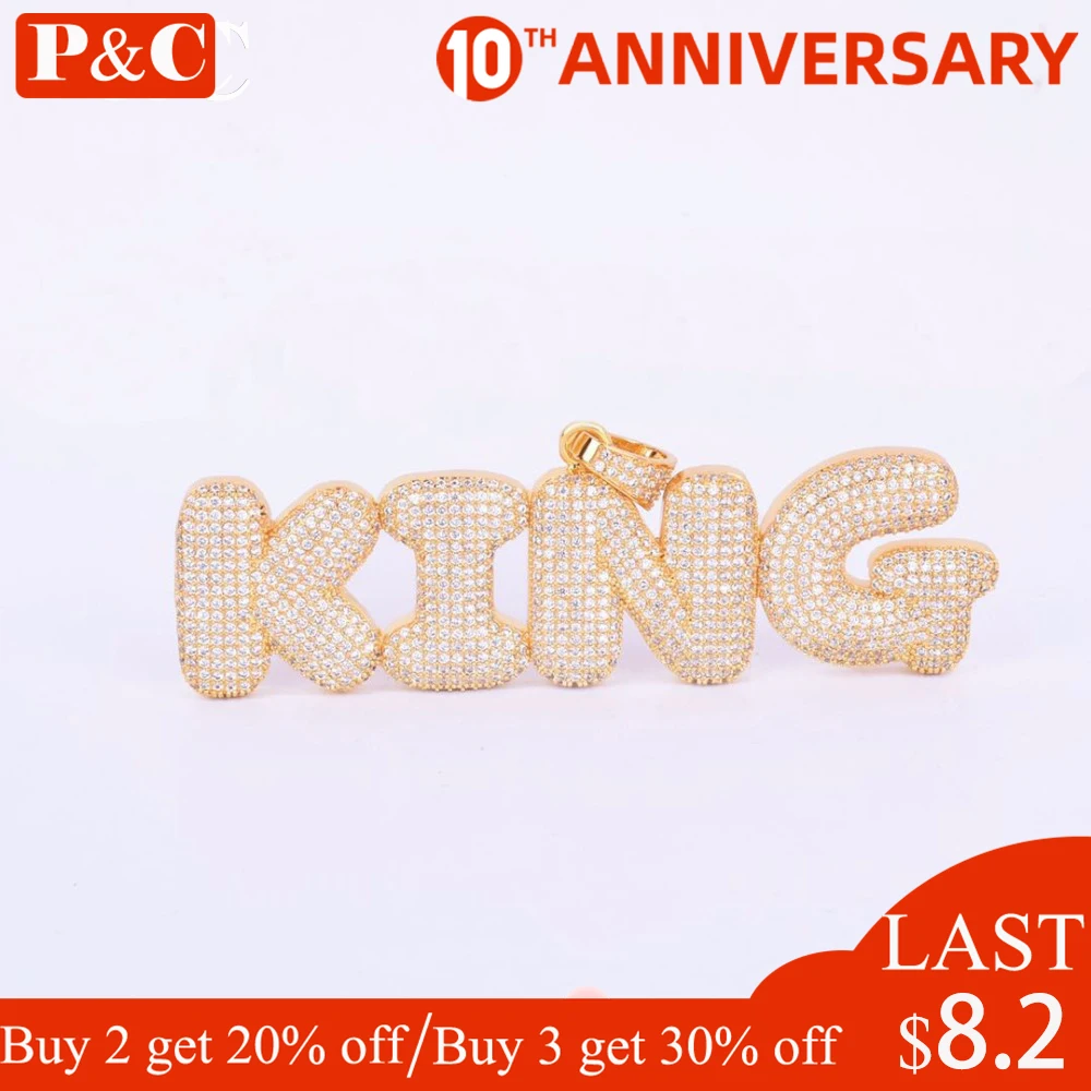 Offer Description of Custom Name Bubble Letters Chain Pendants Necklaces Men's Charms Zircon Hip Hop Jewelry With Gold Silver Tennis Chain