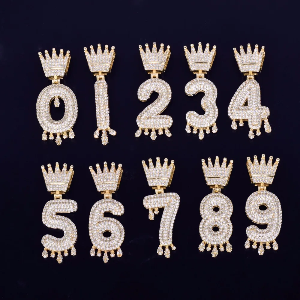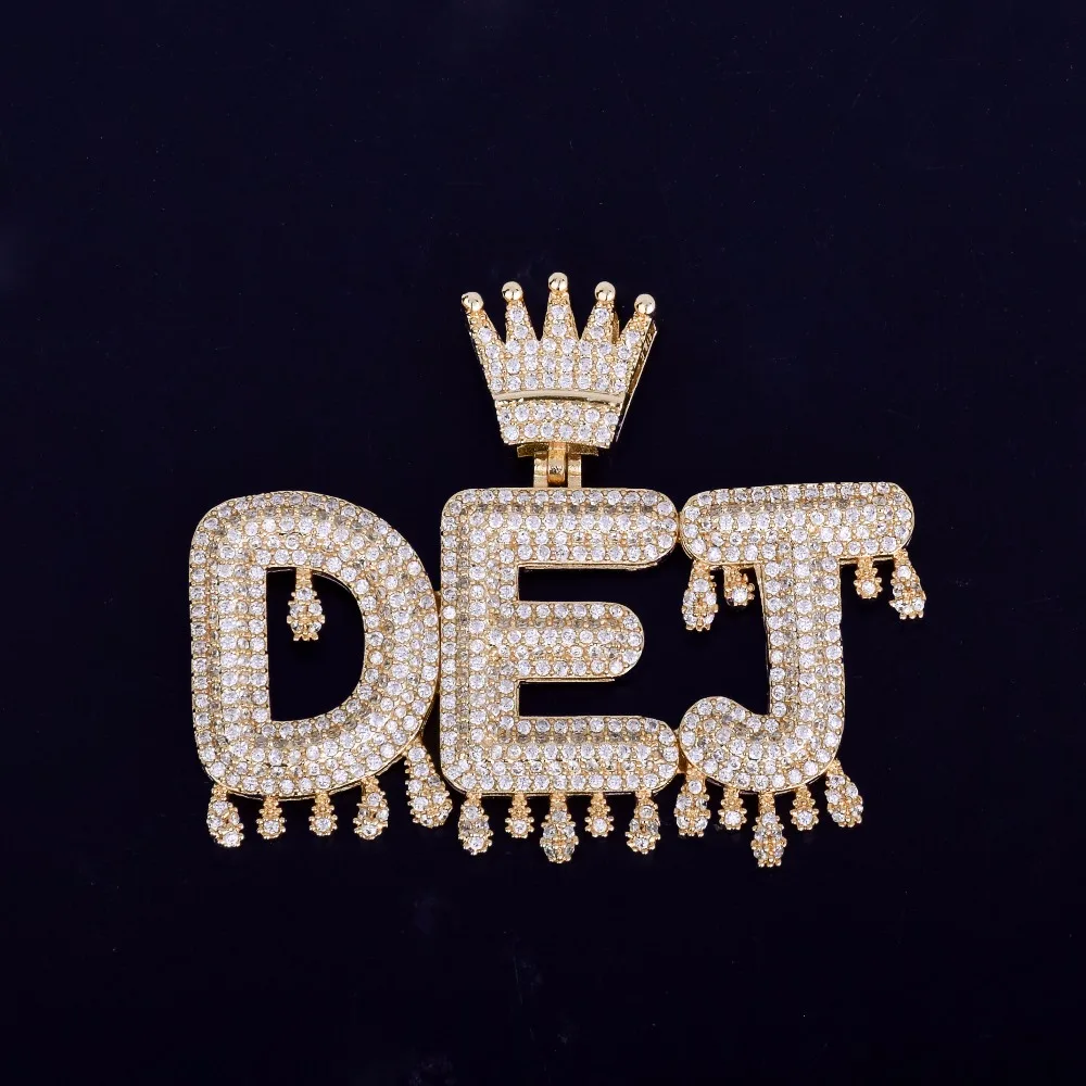 Custom Name Crown Bail Drip Bubble Initial Letters Chain Necklaces & Pendant Men Women Gold Silver Color CZ Hip Hop Jewelry Gift
