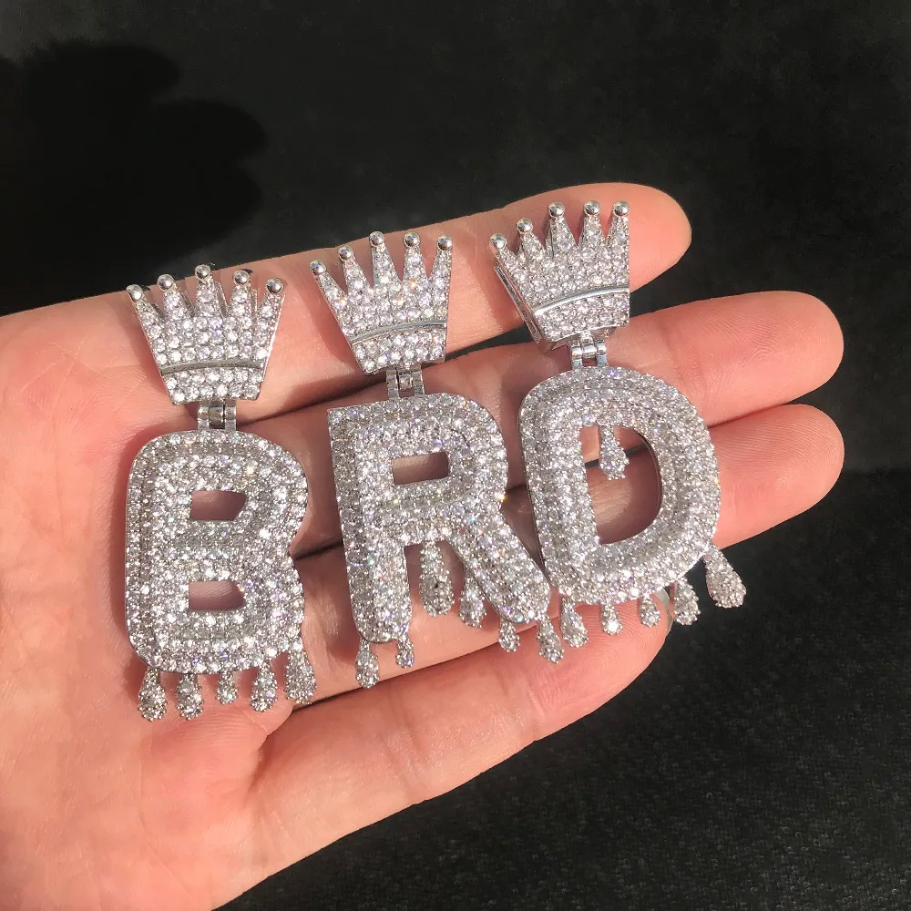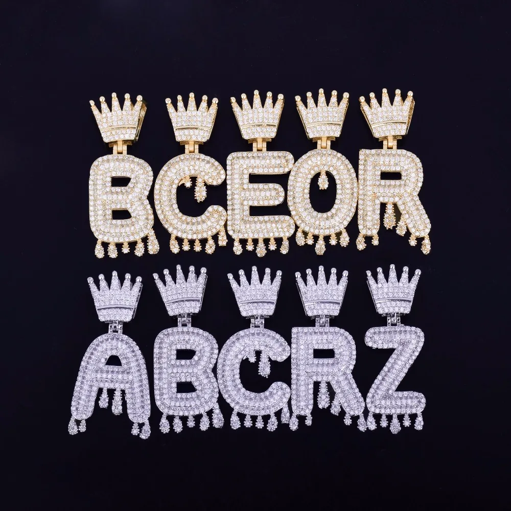 .Pictures of Custom Name Crown Bail Drip Bubble Initial Letters Chain Necklaces & Pendant Men Women Gold Silver Color CZ Hip Hop Jewelry Gift