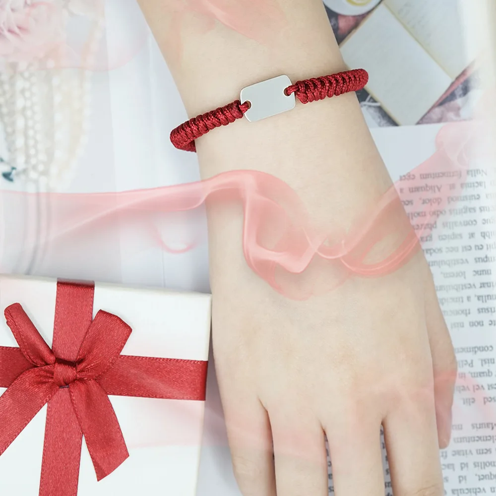 Custom Name DIY Bracelet Women Personalized Bracelet Engraved Letter Rectangle Pendant Stainless Steel Red Black Rope