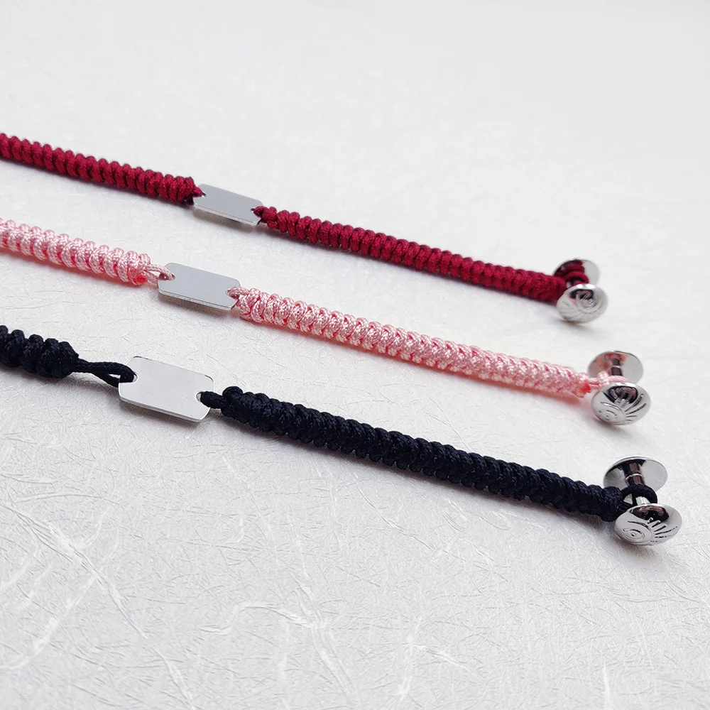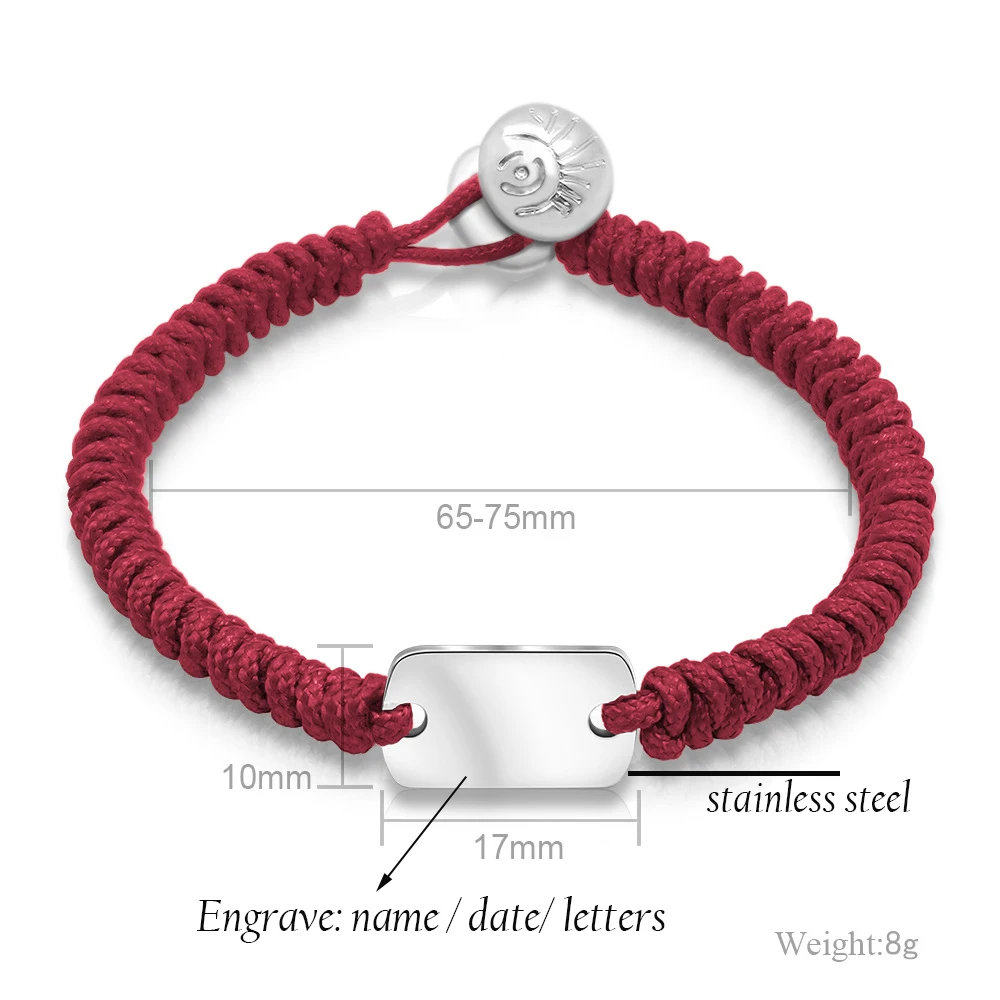 Addition Information of Custom Name DIY Bracelet Women Personalized Bracelet Engraved Letter Rectangle Pendant Stainless Steel Red Black Rope