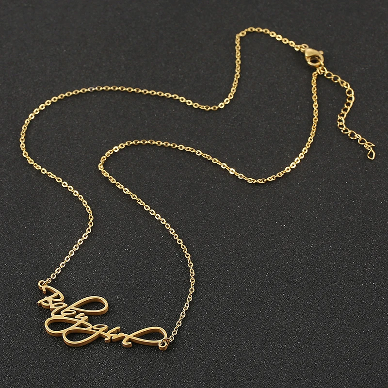 Chance Description of Custom Name Gold Pendant Personalized 3 Color Babygo Stainless Steel Letter Necklace Women Bridesmaid Gift Wedding Accessories