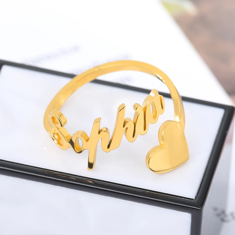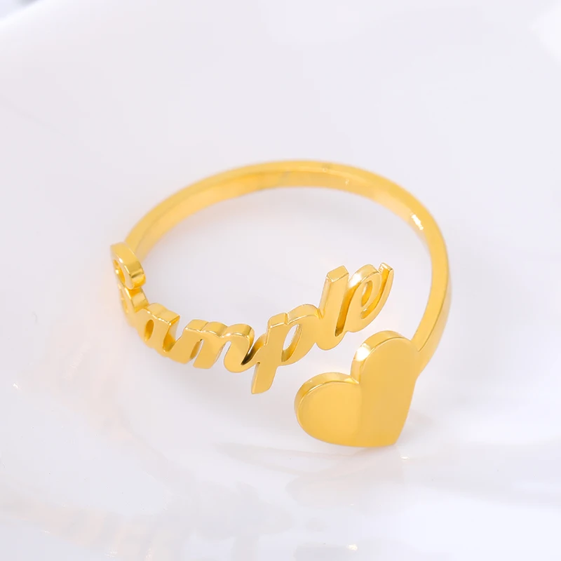 .Pictures for Custom Ring Adjustable Personalized Name Ring With Heart Custom Nameplate Rings For Women Couple Stainless Steel Ring Jewelry