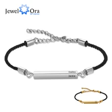 .Images for Customized Engraved 2 Names Bar Bracelets for Men Women Personalized Stainless Steel Adjustable Rope Bracelet Fashion Jewelry