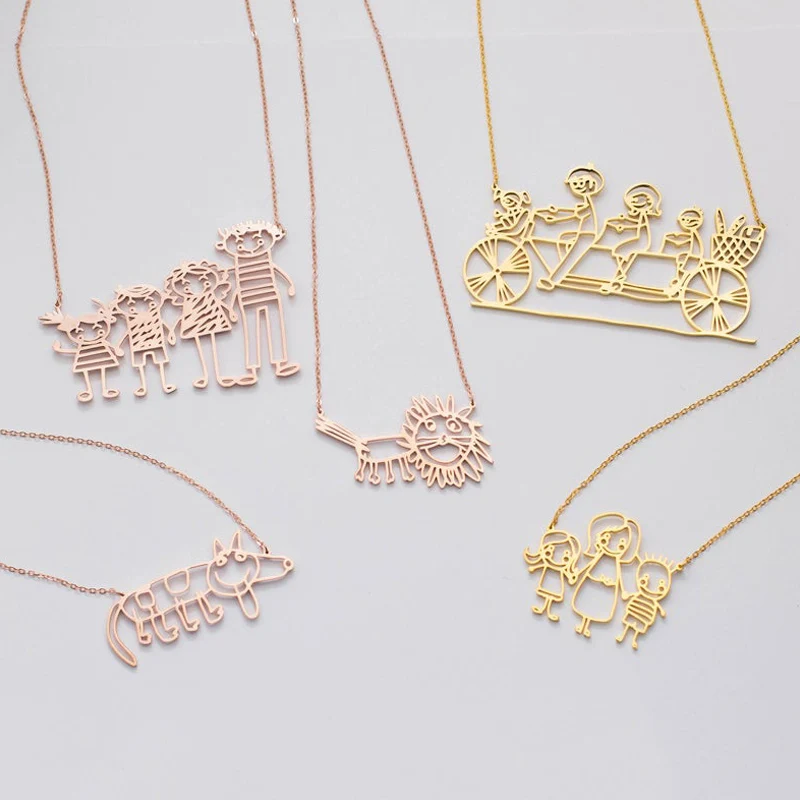 Fun Customized Children's Drawing Necklace Mermaid Pendant Necklace Kid's Child Artwork Safety Logo Jewelry Mother's Day Gift