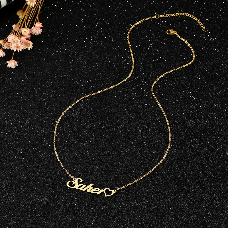 Offer Description of Heart Name Necklace,Customized Crown Name Pendant Necklace,Personalized Custom Stainless Steel Jewelry Gift,Nameplate Necklace