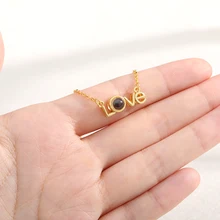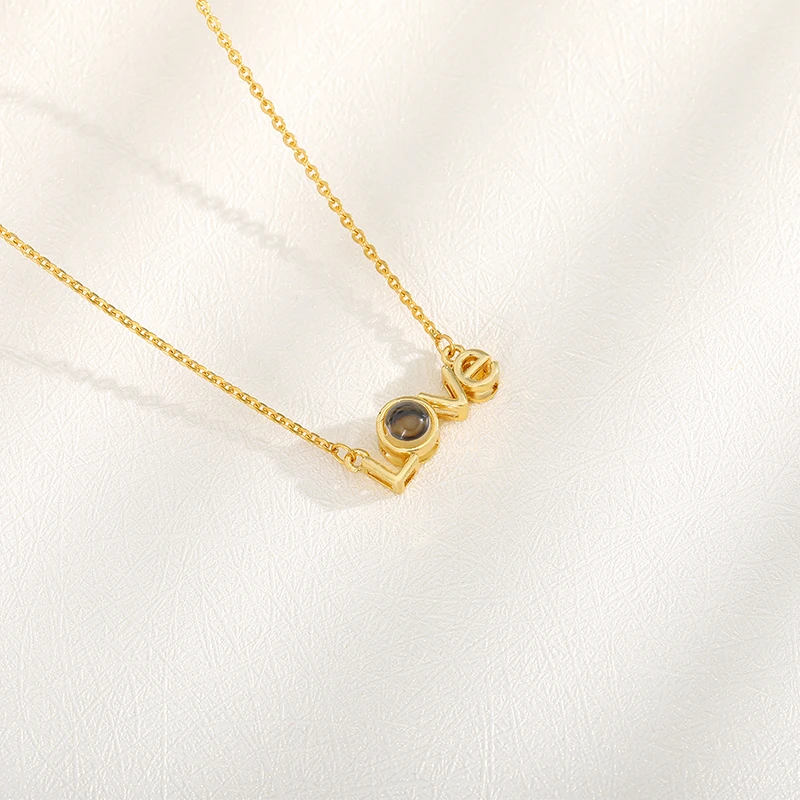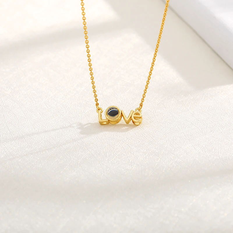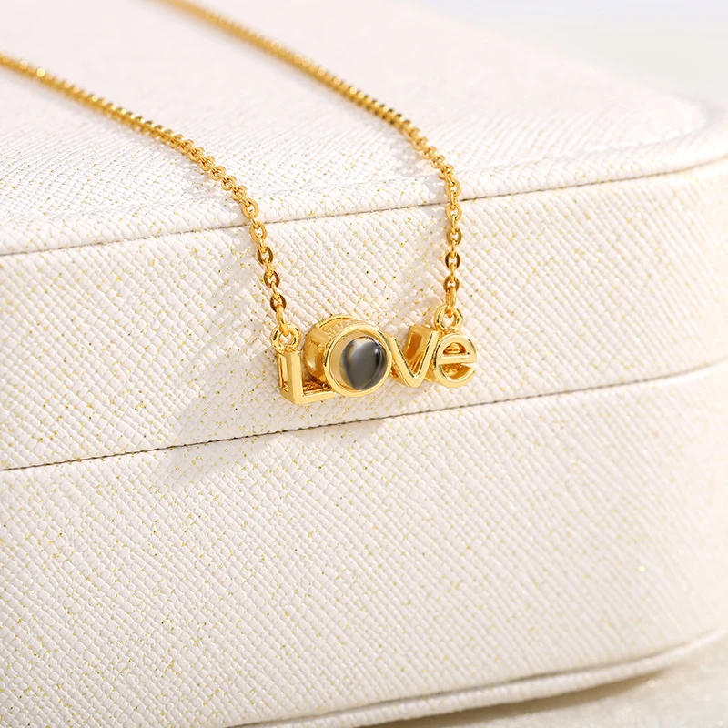 .Gallery of Love Heart Romantic Love Memory Wedding Necklace Rose Gold&Silver 100 languages I love you Projection Pendant Necklace